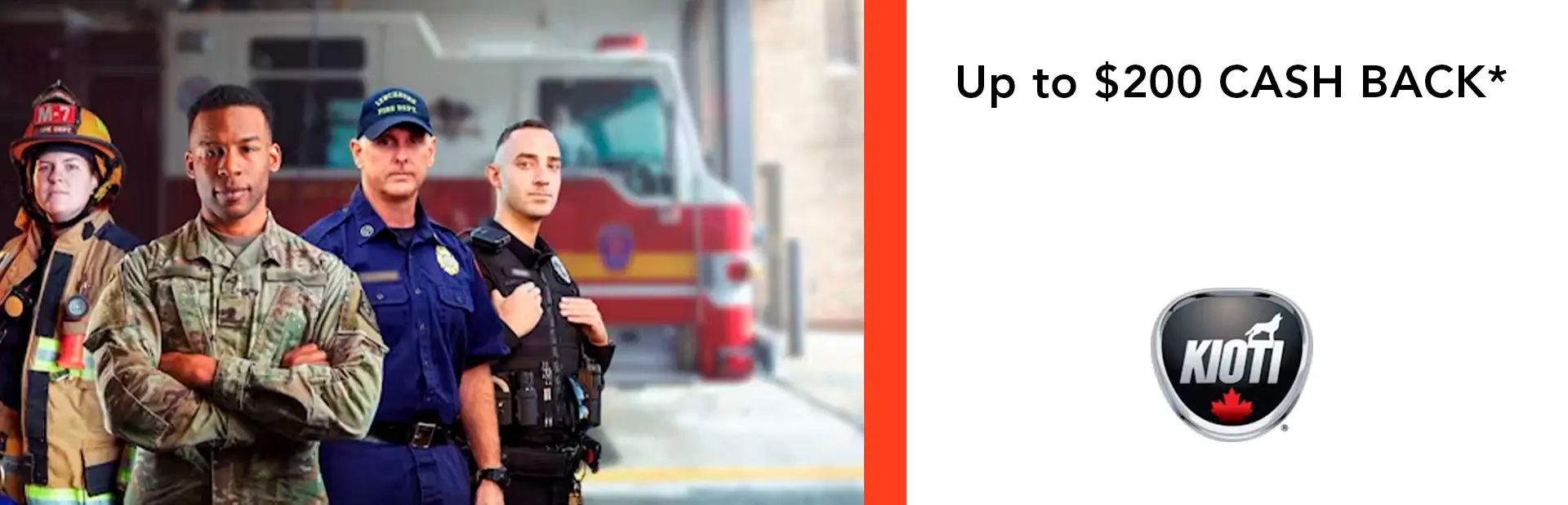 KIOTI salutes our Military, First Responders, and Frontline Medical Workers with up to $200 CASH BACK